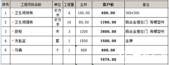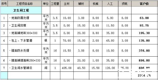 3.5平米基礎(chǔ)主材預(yù)算價(jià)格表