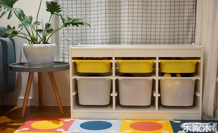 利用墻面拐角處巧做收納柜,木質(zhì)、透明簡易收納柜輪番上陣,有孩子的家里,最多的就是各種各樣、大大小小的玩具。