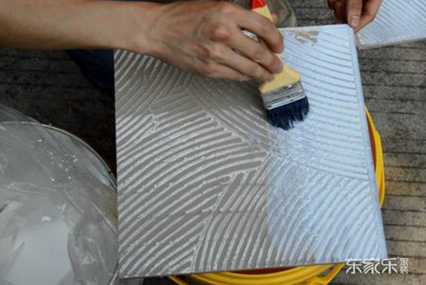 注意問題:這里我們需要注意的一個(gè)問題就是瓷磚使用背涂膠時(shí)雖然不需用泡水,但是我們必須把瓷磚的背部用水清洗干凈才可以。因?yàn)榇纱u背部存在灰塵,油污等,而導(dǎo)致背涂膠無法與瓷磚背部有效的結(jié)合。