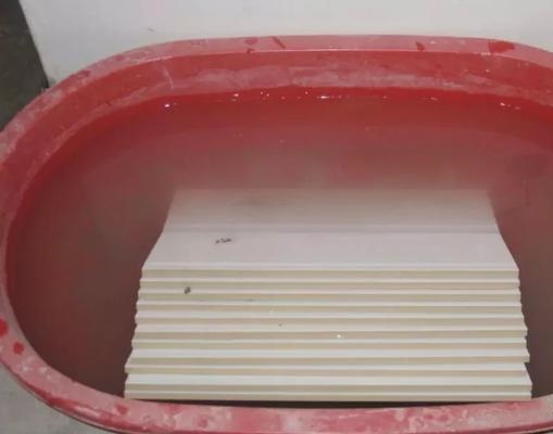 記得陶面要朝下,防止磕碰和刮花,如果施工時間在干燥的夏秋季,可以適當(dāng)延長泡的時間。