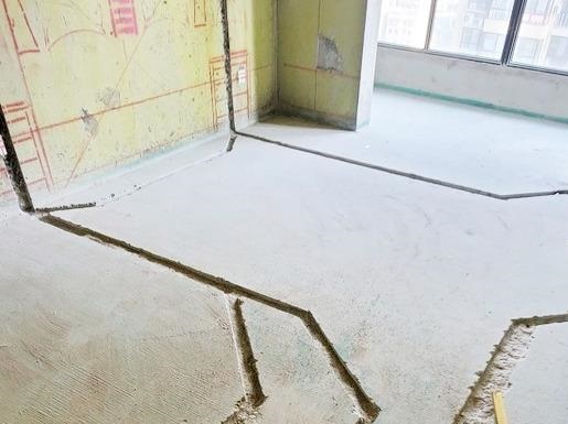 3、在地面上開溝槽時,一定要注意地面的類型。例如地面上安裝有地采暖時,此時是堅決不允許在地面上開溝槽的。如果地面上沒有地采暖,那么我們在地面上開溝槽的時候,深度一定要控制在后澆層的混凝土內(nèi),不能夠破壞到結構板。