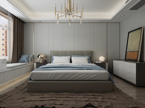 現(xiàn)代輕奢侈風(fēng)格雖然也是一種現(xiàn)代風(fēng)格,但不同于傳統(tǒng)的現(xiàn)代風(fēng)格,現(xiàn)代輕奢侈與色彩的運(yùn)用形成了鮮明的對(duì)比。常用的高級(jí)黑色和高級(jí)灰色作為一種表現(xiàn),給人一種空間整潔的感覺(jué)。并將添加亮度較高的駝色、象牙白色等,為臥室呈現(xiàn)一種溫馨的氛圍、時(shí)尚典雅的風(fēng)格。