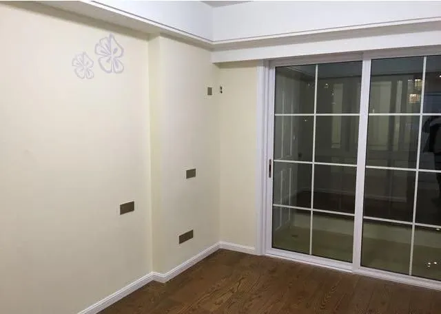 這間我是帶陽臺(tái),地面鋪上了木紋地板磚,墻面是暖色硅藻泥涂上去的,色彩柔和簡單,沒上家具都已經(jīng)感到溫馨了。