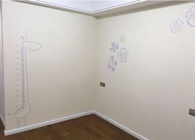 墻面的圖案簡單和不失優(yōu)雅,長頸圖案可愛,還能隔一段時(shí)間測量孩子的身高。