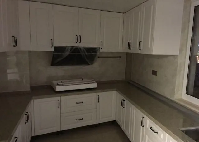 廚房,U形的櫥柜空間,白色的上下櫥柜體現(xiàn)廚房的簡單干凈,灶臺(tái)平面和墻面更顯耐看耐臟。