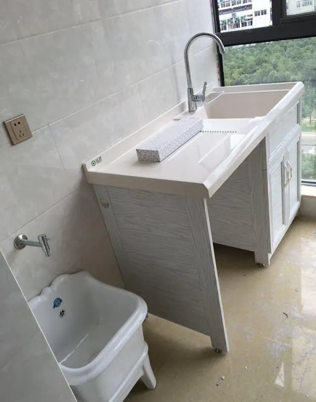 洗衣晾曬的陽臺(tái),落地窗讓采光更棒,加了一個(gè)拖把池,拖地板會(huì)更加方便。